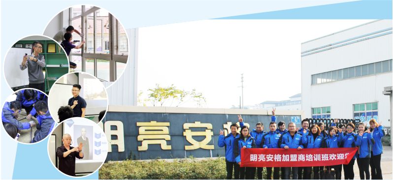 明亮安格開設(shè)培訓(xùn)班,以成熟的培訓(xùn)機制,特聘專業(yè)講師和優(yōu)秀加盟商為加盟商開展企業(yè)文化、產(chǎn)品知識、測量安裝、銷售技巧、活動策劃、市場推廣、渠道拓展、公關(guān)禮儀等專題培訓(xùn)。